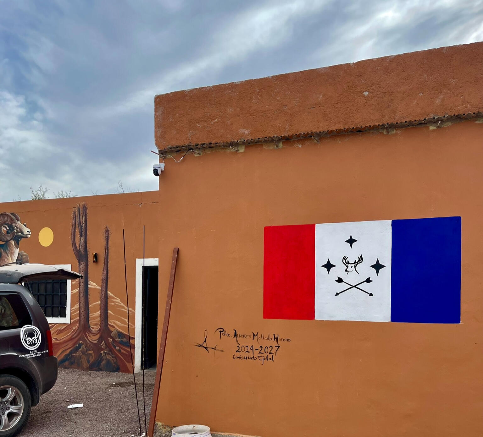 En nombre del comisariado ejidal de la administracion 2024-2027, tenemos el gran orgullo de presentarles la nueva piel de nuestro Rancho Pozo Coyote.Un mural pintado por nuestro gran amigo, Francisco Mendez Cota Francisco Mendez / Heks one, quien sin duda es un artista Sonorense extraordinario, y que con su obra honra a nuestro pueblo originario, a las especies que son sustento de nuestras comunidades mediante el aprovechamiento cinegetico como el Borrego Cimarron y el Venado Bura, al Coyote que da nombre al campamento, y a los Cirios especie endemica y emblematica que unicamente se encuentra en nuestro territorio sagrado.En esta administración estamos convencidos, sabemos y creemos firmemente que con esfuerzo de equipo podemos hacer las cosas mejor, que con medios propios podemos lograr metas que antes no se cumplieron, que podemos rescatar los espacios que por años se habian deteriorado y estaban en completo abandono, podemos convertirlos en espacios dignos de nuestro ejido y hacer que que perduren en el tiempo, y que sirvan para transformar nuestro presente, que podamos estar orgullosos todos y esta obra es un regalo de nuestro comisariado ejidal para el futuro de nuestro ejido.